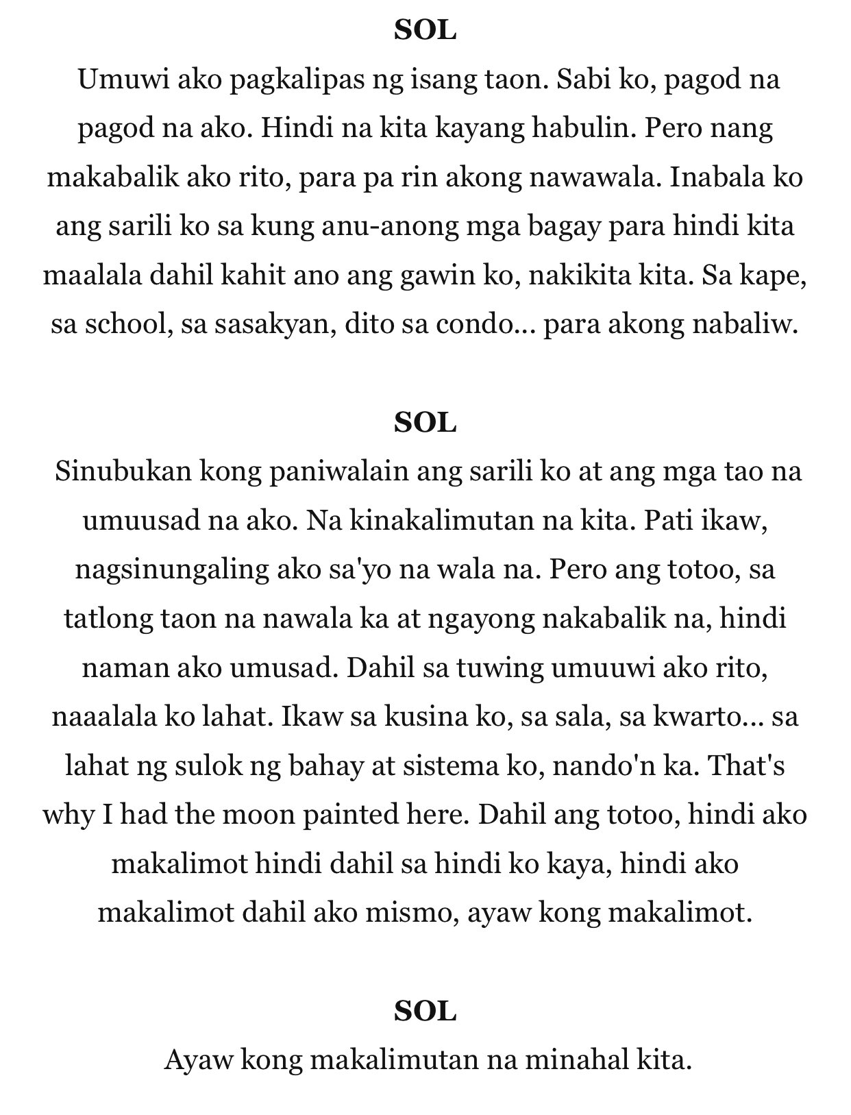 Dahil sa aking pagsusumikap sa pag aaral ay makakamit ko ang dati na pangarap lamang Iyak ako ng iyak noon at hindi ko alam ang gagawin ko nang itawag nila sa akin na ang tatay at kapatid ko ay nasa ospital at wala nang buhay. Kung anong navivisualized ko sa sarili ko. 1 through 30Rochelle Joy V.