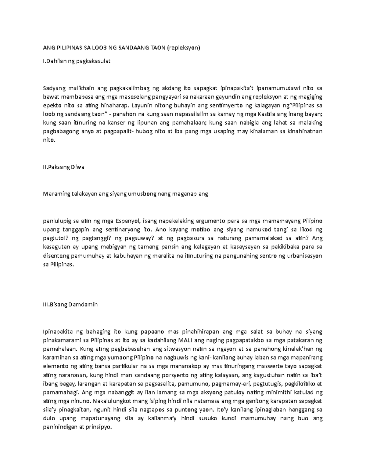 Rizal The Philippines a Century Hence 3. You can learn more about the contents of his piece here. Ang pilipinas sa loob ng sandaang taon reaction paper.