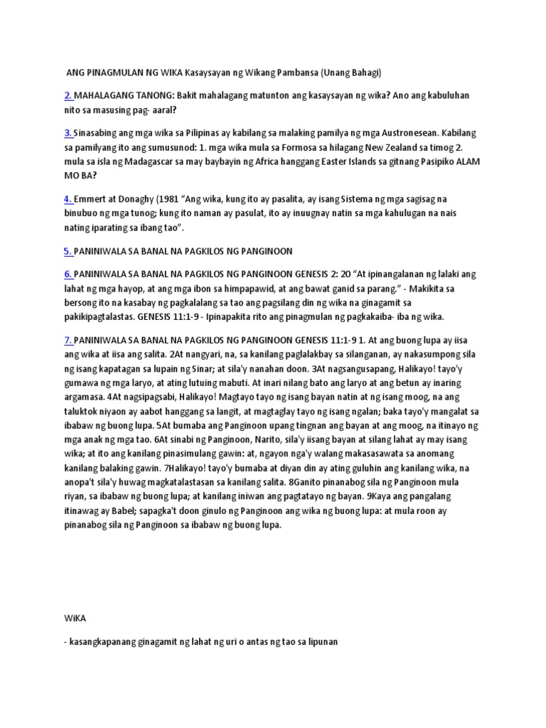 Ang Pinagmulan Ng Wika Kasaysayan Ng Wikang Pambansa Pdf