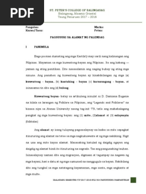 Pagsusuri Sa Alamat Ng Palendag Pdf