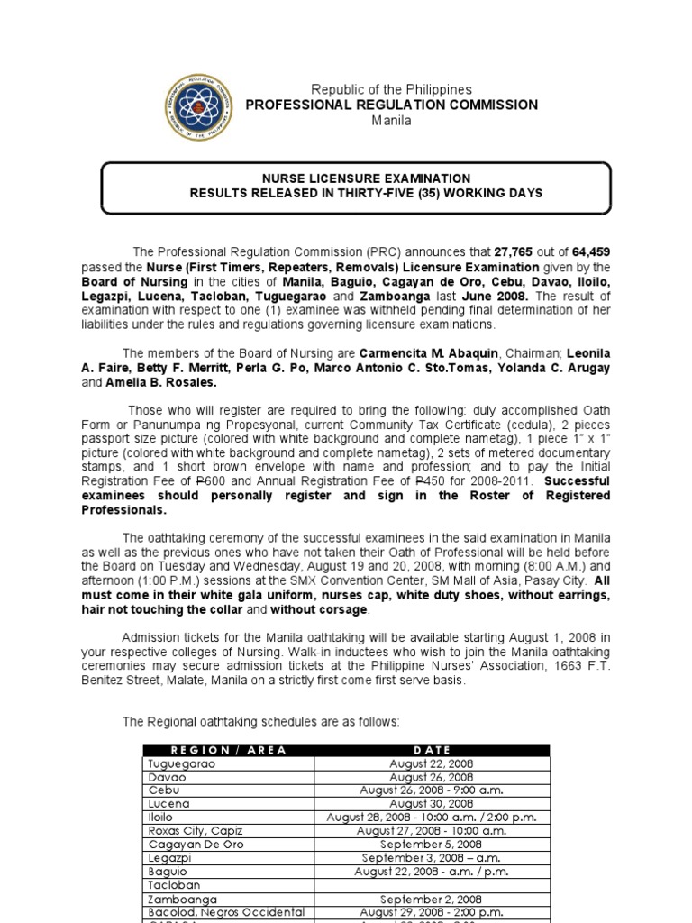 Prc Nursing Exam Results June 2008 Leisure